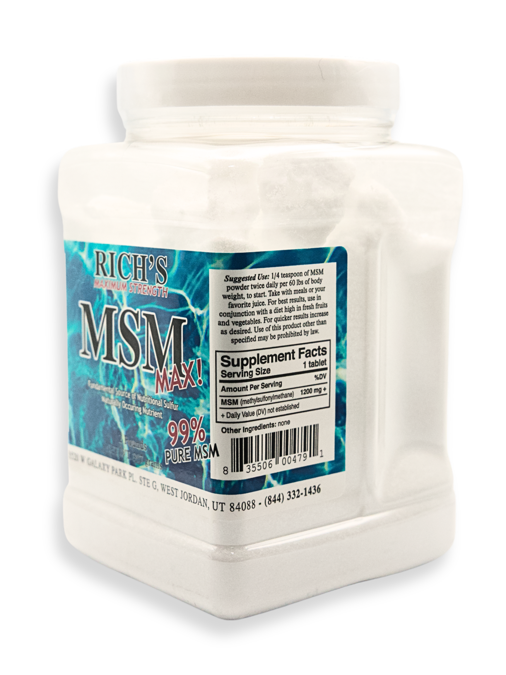 Unlock your body's natural healing potential with Rich's Pure MSM Dietary Supplement Powder. Made with 100% pure Opti-MSM flakes, this high-quality supplement provides the natural sulfur your body needs to regenerate healthy cells and promote proper healing. Whether you are seeking relief from joint discomfort, boosting your immune system, or supporting overall wellness, this powder is the perfect addition to your daily routine. (Great alternative to those who struggle to swallow tablets.)